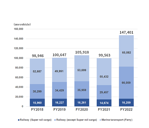 - Refer to CO2 emission intensity (g-co2/tonKm) "CO2emissions per transport volume" published by Ministry of Land, Infrastructure, Transport and Tourism