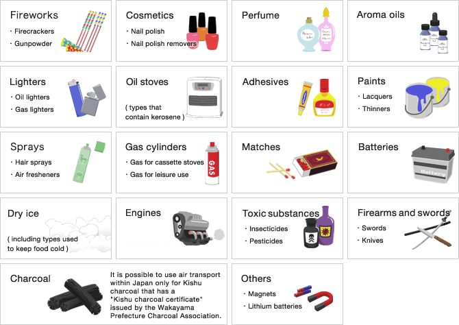 Please note that the following items cannot be sent by Hikyaku Air Express.