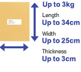 The service can be used to send parcels up to 34 cm long, 25 cm wide, 3 cm thick and 3 kg in weight.