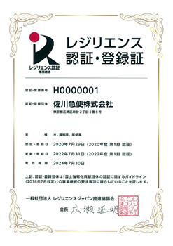 In the Resilience Grading system run by the Research Organization for Grading Japan, we were awarded the first Three-Star Resilience Company certification. This certification is awarded to companies and organizations who are proactively engaged in disaster preparedness and disaster reduction activities. In this case, we were recognized for our efforts to prepare for disasters such as the Great East Japan Earthquake and large-scale typhoons.