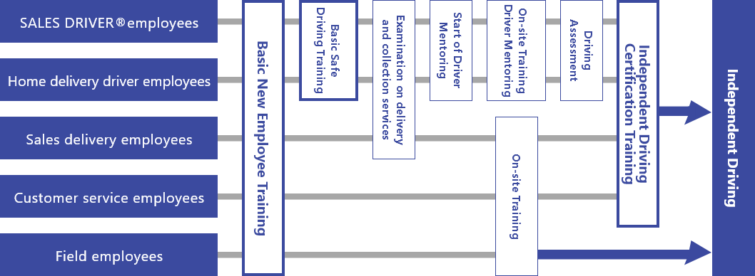 In the same way as for drivers, we also have educational curricula in place for customer service and other administrative staff. Specifically, we have created a system whereby new employees are equipped with the full set of necessary skills one year after joining the company.