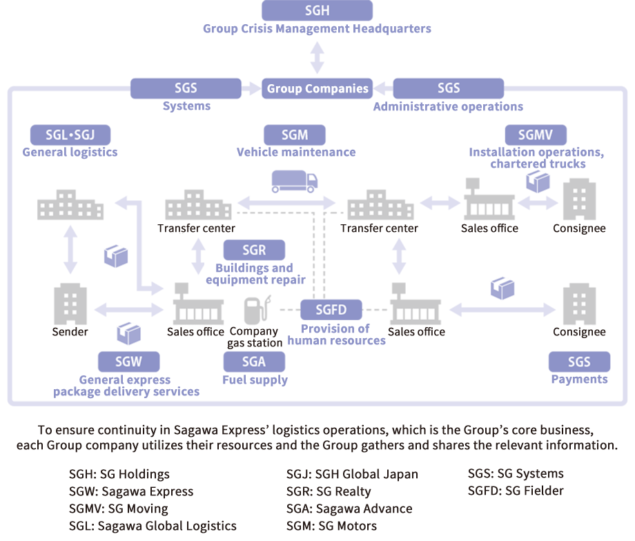 Due to the nature of its business in logistics, the SG Holdings Group recognizes that risks related to disasters and accidents can have a particularly major impact on its operations. To ensure business continuity during disasters and accidents such as large-scale earthquakes, fires, explosions, and floods, the Group has formulated a BCP that clarifies every process from initial response to the resumption of operations. The Group also places emphasis on BCM to ensure that the BCP functions appropriately.