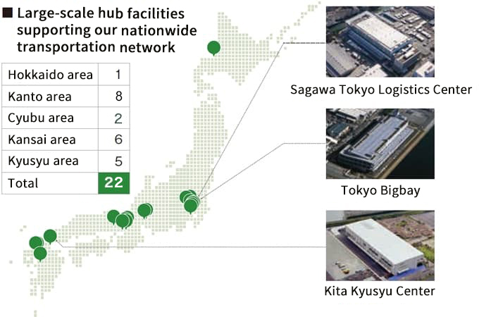 An environmentally friendly transportation system with 22 Large-scale Hub Facilities across Japan