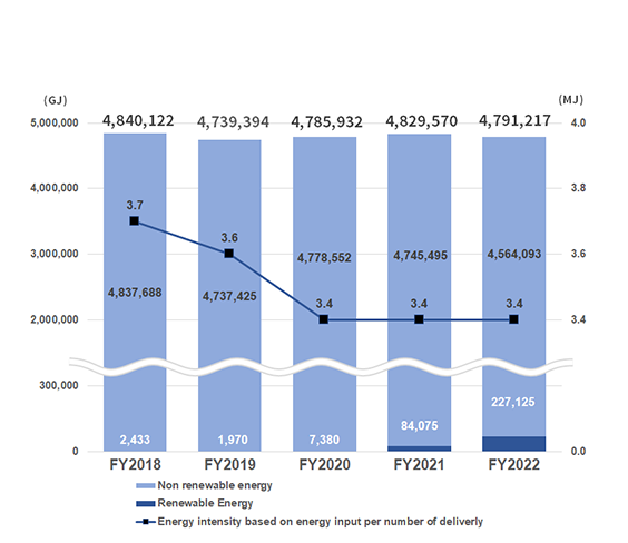 | Energy intensity based on energy input per number of deliverly | MJ | 3.7 | 3.6 | 3.4 | 3.4 | 3.4 | ||