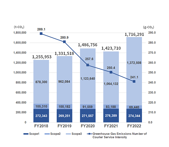 | Greenhouse Gas Emissions Number of Courier Service Intensity*5 | g-CO2 | 289.1 | 280.9 | 257.6 | 250.4 | 241.1 | |||