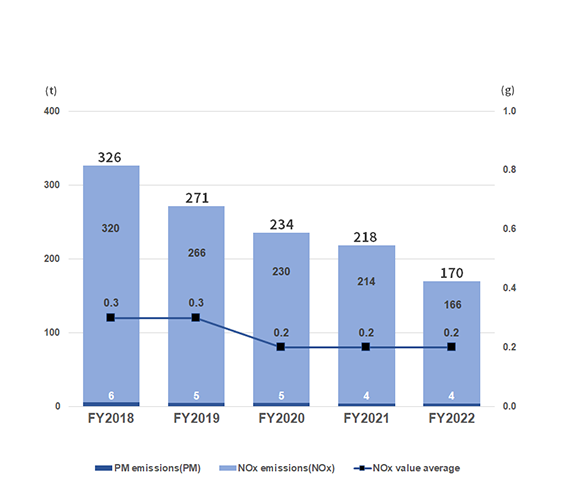 | NOx emissions(NOx) | t | 320 | 266 | 230 | 214 | 166 |
