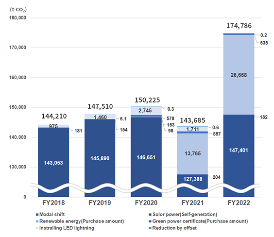 | Scope1 | Modal shift | t-CO2 | 143,053 | 145,890 | 146,651 | 127,388 | 147,401 |