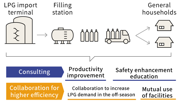 For Astomos Energy’s group company responsible for LPG delivery, GOAL has provided staff training and developed safety codes to establish safety. In the off-season for LPG demand, GOAL helped the group company utilize its LPG delivery network to increase productivity.