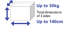 This service is available for packages up to 140 cm (total dimensions of 3 sides) and 30 kg in weight. |