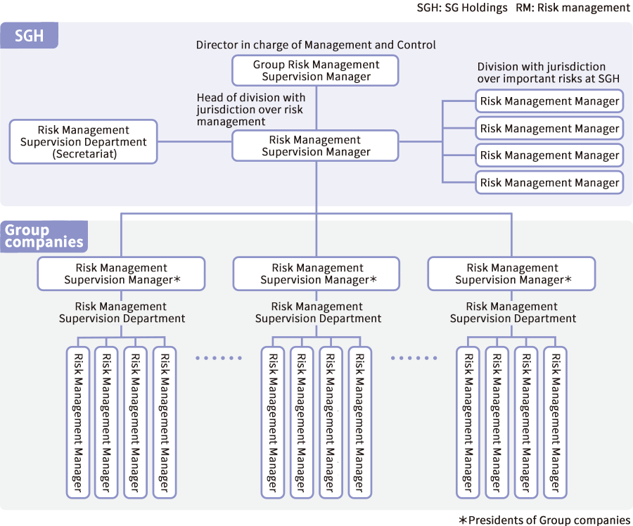 SG Holdings' Director is responsible for promoting Groupwide risk management, and the individuals and organizations responsible for risk management are as below.